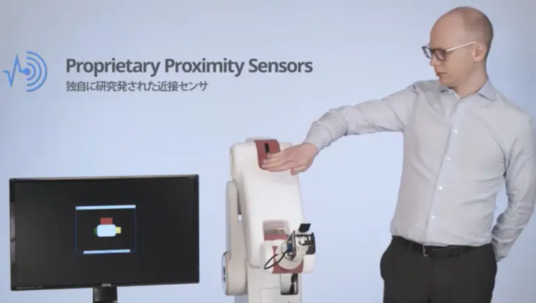 センサ班は、協働ロボット向けの分散型皮膚センサを開発しています。ロボットハンド用の皮膚は、最小限の配線で分散型3軸力計測を可能にします。スピンオフとして xelarobotics.com を展開しています。現在、グループでは高性能なセンシング特性を実現するために、伸縮性ワイヤや液体封入型センサの実装を進めています。触覚センサは重量検知、滑り検知、その他さまざまなタスクに利用可能です。また、ロボットアーム用の皮膚は人間の接近を検知し、安全な人間・ロボット間のインタラクションを可能にします。
